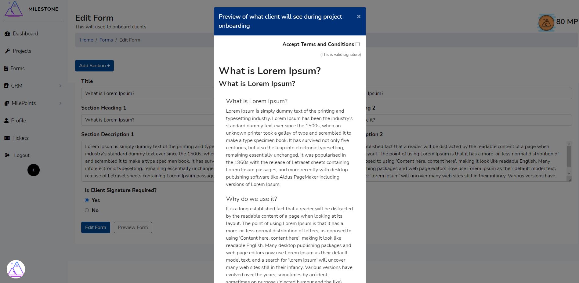 Create onboarding form templates and preview what they look like before sending them to clients.